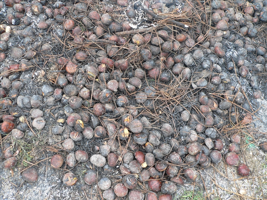 Depois de assadas, em convívio, comeram-se as castanhas e bebeu-se a "água-pé".