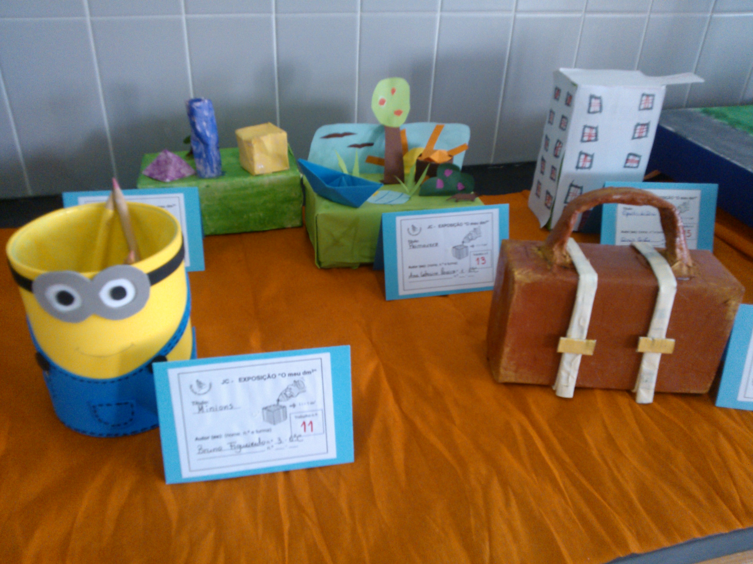Os trabalhos foram expostos na sala 11 C, onde decorreram outras atividades matemáticas, no decurso das jornadas culturais. As construções foram alvo de apreciação pelos pares e demais visitantes do citado espaço, tendo-se constituído favoritos: “o porta-lápis Minions”, da autoria do aluno Bruno Figueiredo, da turma C, “os noivos”, da autoria da Juliana Couto e da Lara Pedrosa, da turma E, e “o castelo”, construído pela Ana Carolina da turma D.